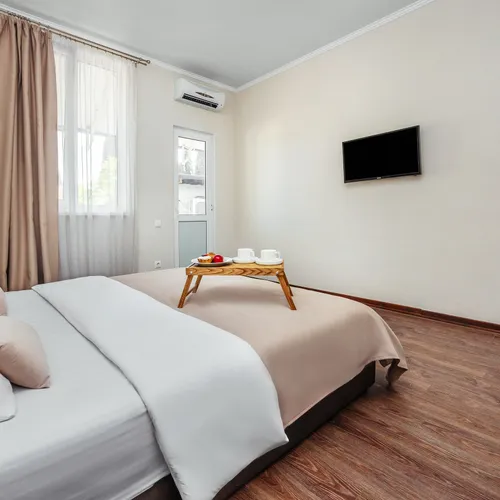 Гостям предлагаются комфортные номера со всеми удобствами: кондиционер, телевизор, Wi-Fi, холодильник, удобная мебель и балкон с видом на море. На территории отеля работает ресторан, где можно отведать вкусные домашние блюда, а также есть зона отдыха и парковка для гостей.